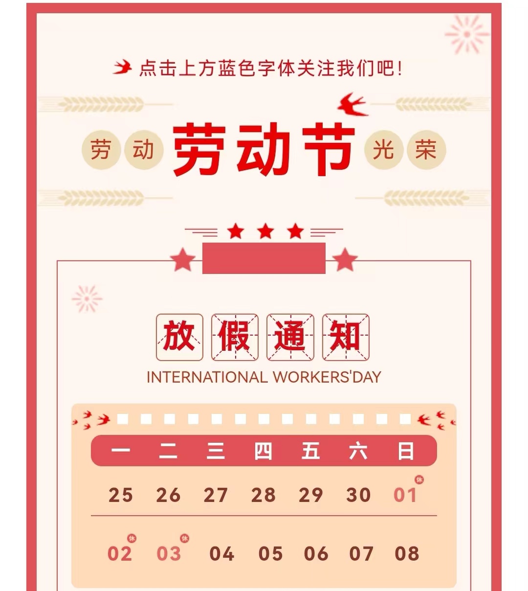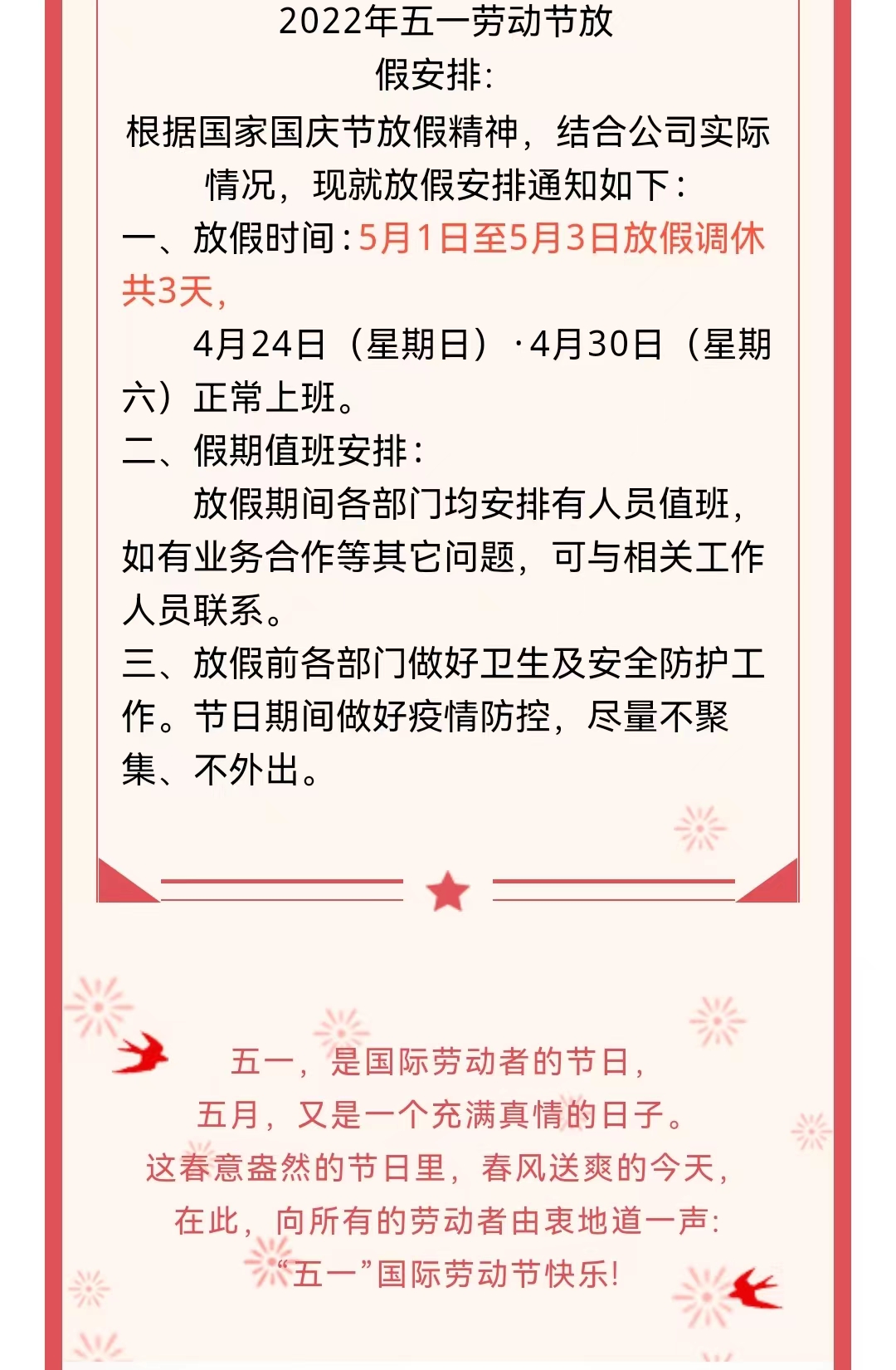 五一勞動節放假通知